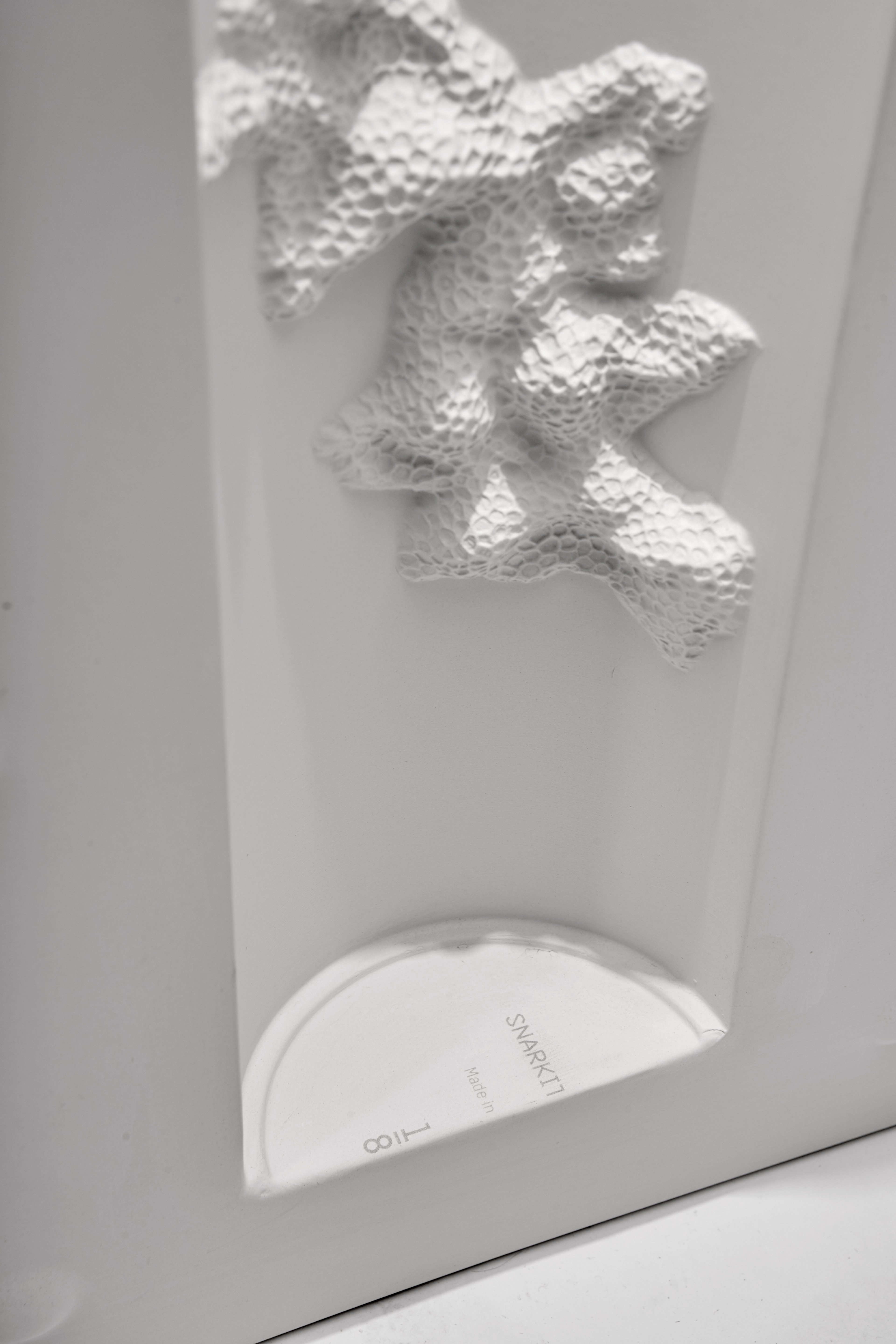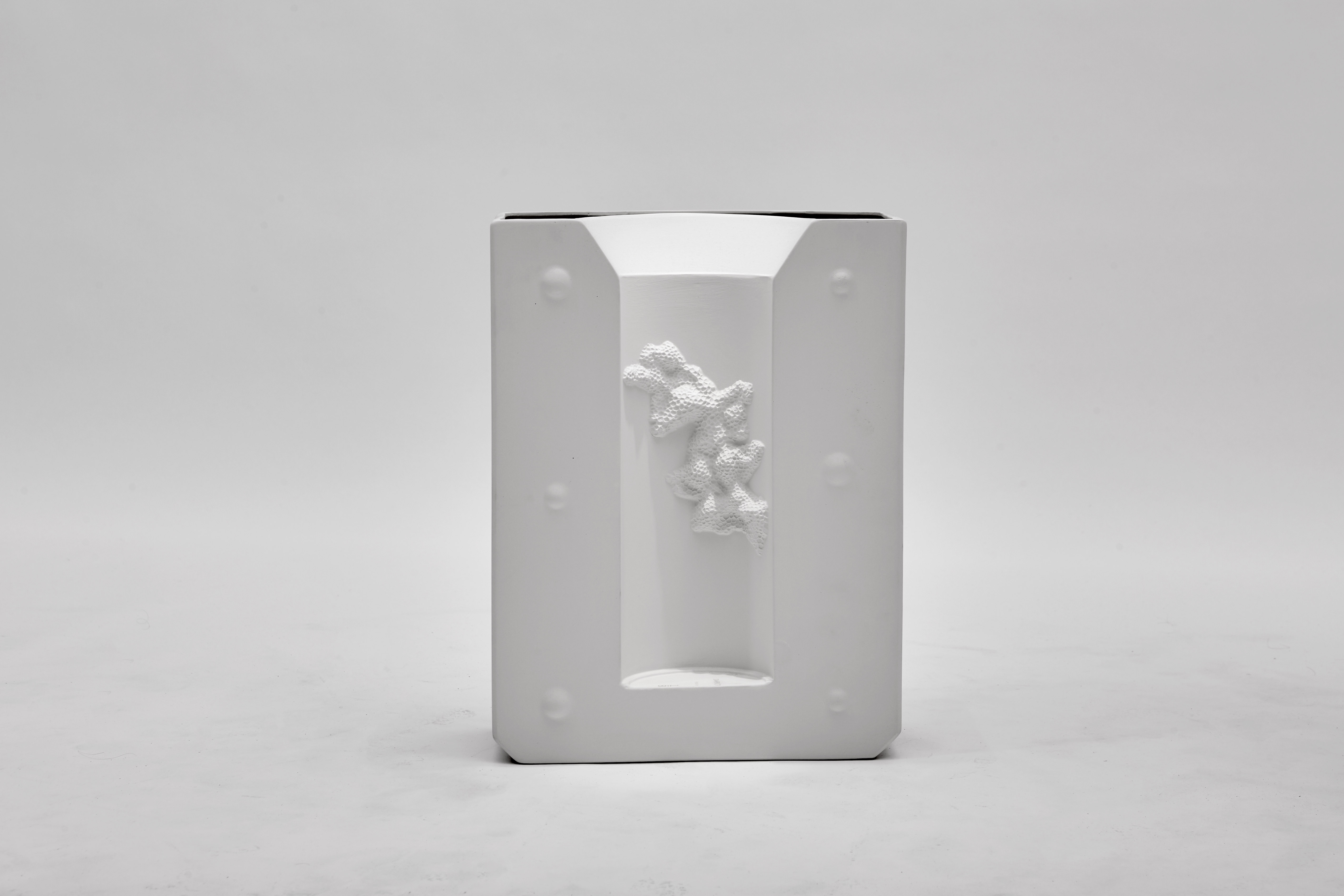 Normally unseen, the box-like volume is impressed with exactly one half of its companion Positive piece. Rendered in bone china instead of the plaster or plywood typically associated with a mold, Negative is also given a new function as an open vessel.